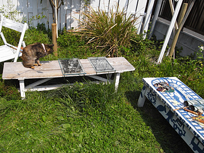 海の家でもタイ料理をだしてるakiちゃんのおいしいタイランチと、初参加セキヒロのきりえ。 | ■期間 07年4月28日 (土)〜07年4月29日 (日) ■時間 11:00am‾15:00pm ■会場名 うちの家 ■会場所在 ■主催者名 セキヒロミ&aki ■料金 cafe&グッズ有料、見るのはただ。 ■問合せ先 セキヒロミ ■電話番号 o8o.5422.3957 ■メールアドレス 2007/3/16更新 2007/1/31 登録 3576クリック 4回更新 |
