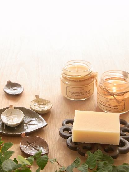 陶芸教室・智工房と天然素材コスメ・zisenのコラボ展です。毎年ご好評を頂いている手作りのやさしい石鹸は、さらに効果的な漢方石鹸やハーブ石鹸をお作りします。また、100%植物性のパームワックスを使い、空気を浄化しながら精油で癒される可愛いキャンドルも☆その他、バスソルトなど手作りアロマアイテムでお出迎えします!(100円から)うつわも新作たくさんでお待ちしています。お買い得商品たくさんあります☆