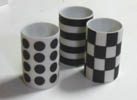 ボーダー、水玉、市松。この3つの柄の着物と帯を眼にしたら大抵迷わず手にいれる。市松の洋服はさすがに買った事はないけど、洋服もボーダーもしくは水玉を見ると買おうか買うまいか悩むくらい程の中毒症状が。この湯呑みは「森正洋」さんhttp://www.design-mori.co.jp/...のデザインだそうで、セレクトショップにあったのを見つけた。かわいいとか格好良いから買ってるかというとそういう事でもなくて、「本当に好きだよね」なんて言われると恥ずかしいようなこそばゆい気持ちになる。絞りのアイテムは柄がないのでどんな組み合わせにもあわせやすいと言われるように、私にとってのとりあえずの定番。 |