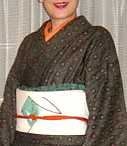 帯は黒地に白の紅葉?八手柄?の絞り。(豆千代)