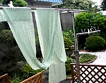 昨日購入の麻綿の長尺の端切れを、水通しして、裁断。