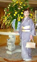 2009.1.1 [木] 長い袖を詰めた黄色の薔薇の着物一枚に帯4本 |