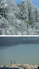 上空は、鈍より雲だけど、北アルプス周辺だけがくっきりと見えて、綺麗です。 |