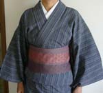 宣言どおり会津木綿を着てお当番。生マネキンよろしく立っていたら、大変評判がようございました。仕立てはさておき(着ちゃえば見えないからね)、似合いはしているらしい。自画自賛。帯は、半幅を貝の口に。