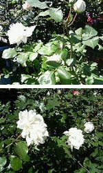 「新雪」は剣弁高芯咲きに分類されているはずですが、これはなんとなく、ロゼット咲きっぽく見える、ような気がしないでもない。 |