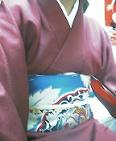 臙脂の着物に鳳凰の帯、アキコさんから譲り受けた帯揚げ。