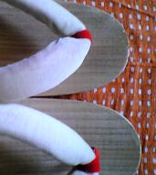 こっちは雪が無いから、履き慣れた草履でがしがし力強くお出かけしたいものだわ |