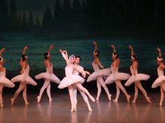 白鳥の湖は群舞が主役のようなもの。このシーンと、2幕の最後近くの、円形になってみんなで伏せるシーンがよくポスターなどで使われます。あそこも必死で前屈。