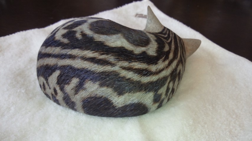 木彫りの猫さんなんです。本当に良くできてて可愛い。夏にデパートで出会って売約済みだった仔と同じ仔をお願いしてやっと昨日やってきました。