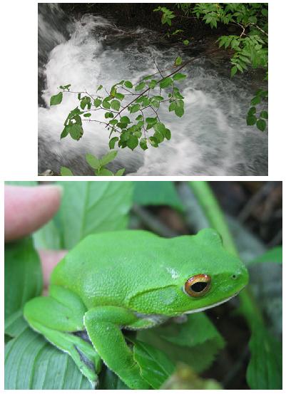 とてもよく似たモリアオガエルは赤い目蓋です。 |