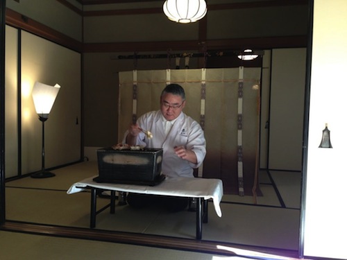 写真は、徳岡さん自ら蟹を焼いてくださっていることろです。 |
