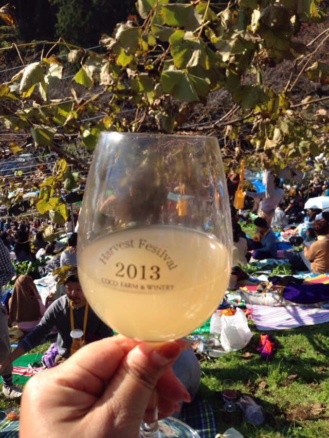 最高のお天気の中、素敵な音楽を聴きながら できたてのワインを飲みました!初めての参加だったのですが、葡萄畑の斜面に座って飲むの楽しいねえ。