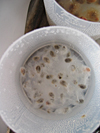 茶綿のタネの一部は、すでに殻が割れはじめている。