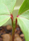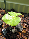 茶綿の双葉はしわっぽいが、厳根はつるっとしている。 |