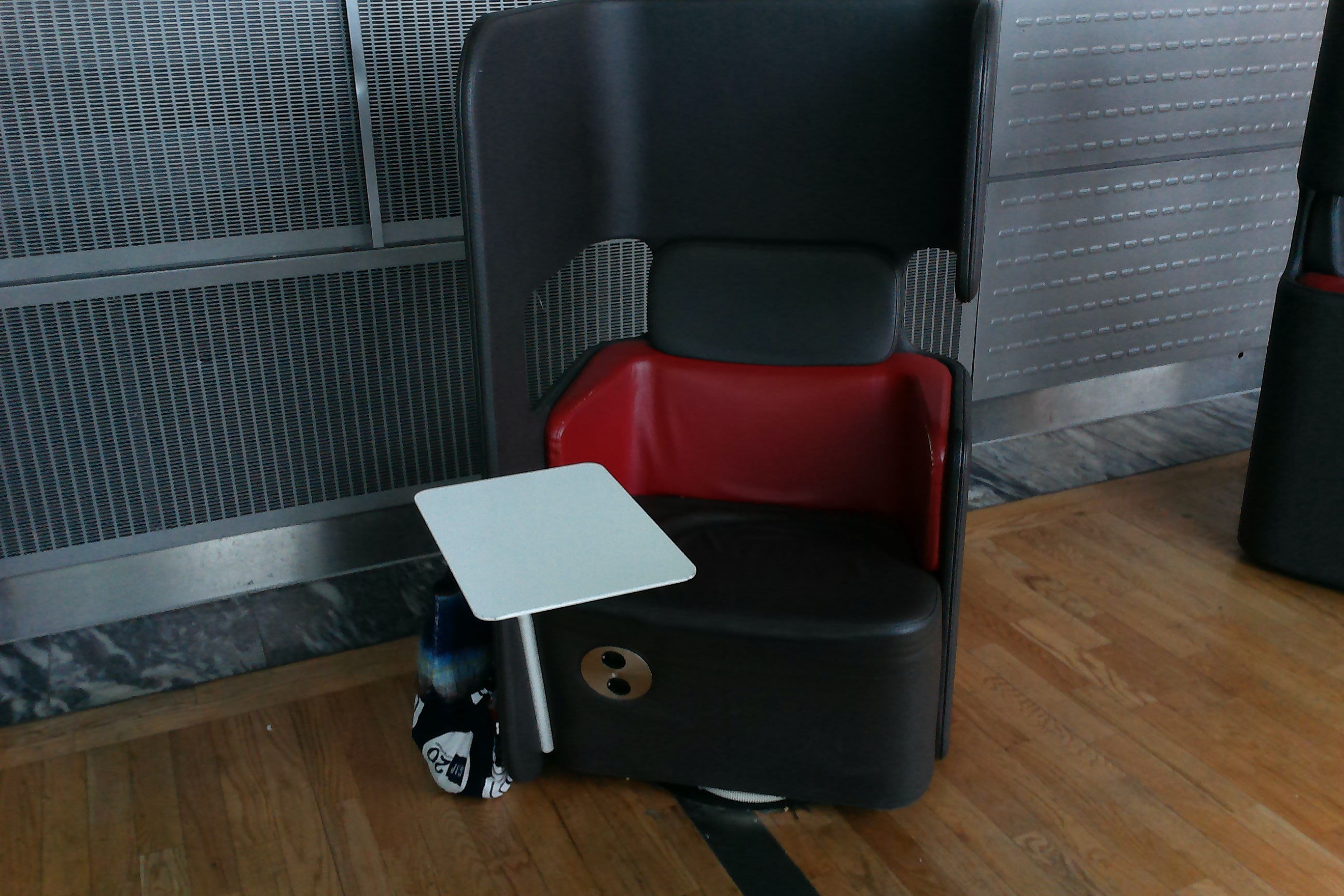 搭乗待合の脇に、だれでも無料で利用できるビジネスブースがあって、人目を気にせずお仕事できます。