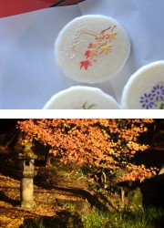 まずは大徳寺の月釜へ。瑞峯院は鎌倉からいらした素敵な方が席主でした。白のふわふわが乗ったきんとんの銘は「青女」。青女とは霜や雪を降らすという女神。転じて霜の別称なのだという。干菓子は照葉と松葉、すべて末富製。贅沢! いやそれはお菓子のことだけではなく。