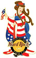 各地のハードロックカフェでご当地ピンズを作っているのですが、東京は着物姿です。